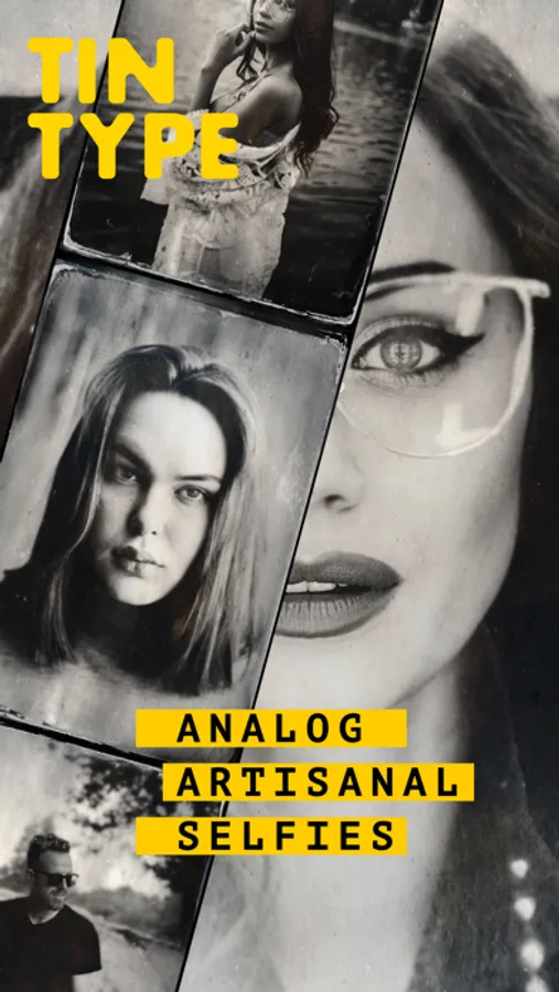 • Four authentic TinType effects: classic B&W, hand-painted color, high contrast dark B&W, and sepia stained ambrotype