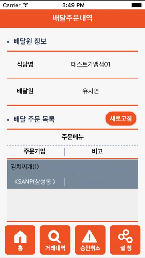 가맹점 전용 실시간 거래관리 및 배달용 어플