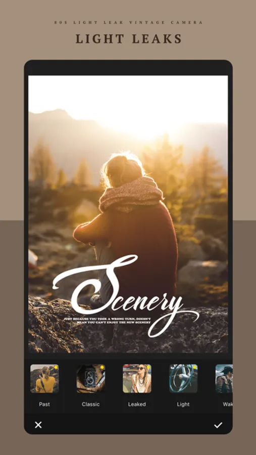 Provides effects beloved by professional photographers, the Light Leaks, Bokeh and Fog Effects will teleport your photographs into a new world, the most full-featured photo editing experience, get creative and inspired.