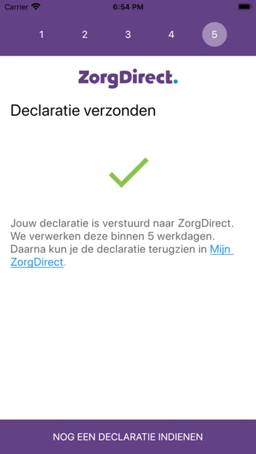 Met de gratis Zorgdirect declaratie app dien je binnen 2 minuten je zorgnota’s in. Vul je gegevens in, maak een foto van de nota en stuur je declaratie met een druk op de knop naar ons toe. Na goedkeuring betalen wij de nota binnen 5 werkdagen aan jou uit. Je declaraties vind je na verwerking terug op Mijn Zorgdirect.