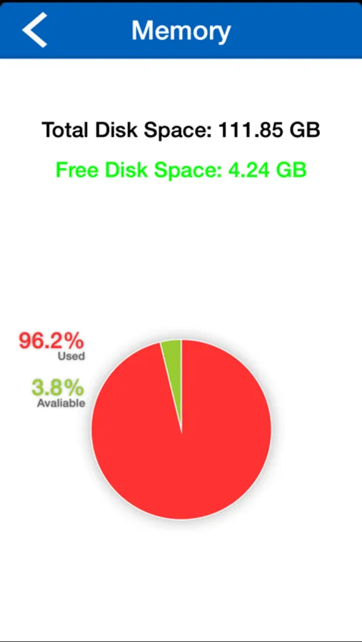 - The perfect app for who wants to check easily the RAM, the free disk space to install new contents, informations about the WiFi and cellular network, battery usage and for who wants detailed technical informations about the device in use.