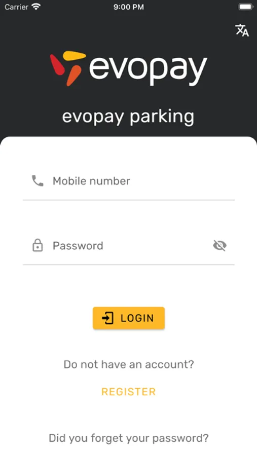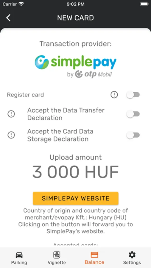 To use the application, pre-registration and top-up is required on the website http://evopay.hu or with the help of the application.