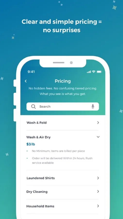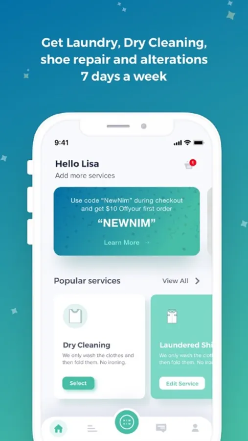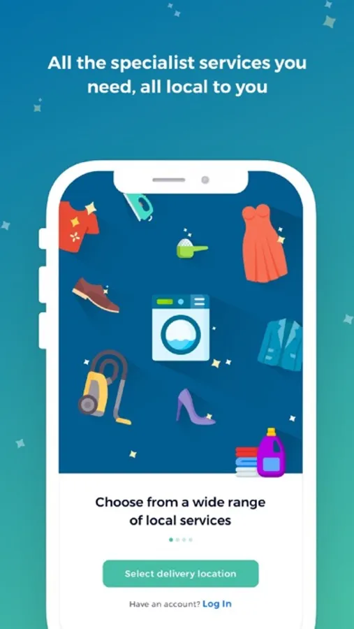 Open the app and choose the service you need (Laundry, Dry Cleaning, Shoe Repair, Alterations, and more)