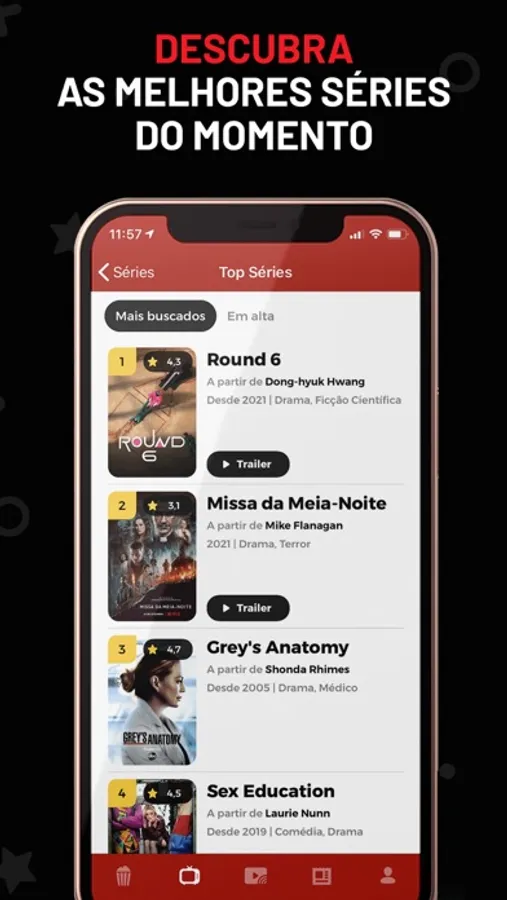 - Para cada FILME e SÉRIE, encontre: data de estreia, críticas dos editores, da imprensa e de usuários, trailer, elenco, guia das temporadas e dos episódios, curiosidades e muito mais!