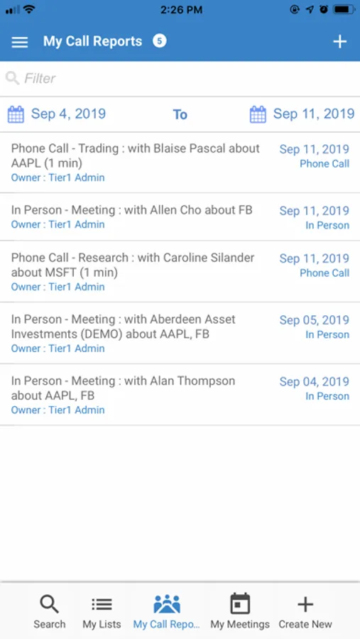 The Tier1 Mobile App is designed to work with, and licensed under the terms of use of the Tier1 Application Suite. It gives you everything that you need before you walk into a meeting – all at your fingertips. You can log a Call Report by voice as soon as you leave the meeting, and the coverage team will be notified immediately. All of your notes are auto-saved as they are being entered so that you never lose data, and changes that you make offline are updated as soon as you regain service. Like all Tier1 products, Tier1 Mobile has Capital Markets grade security features. You aren't tied to a desk, and your CRM solution shouldn't be either.