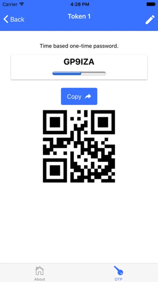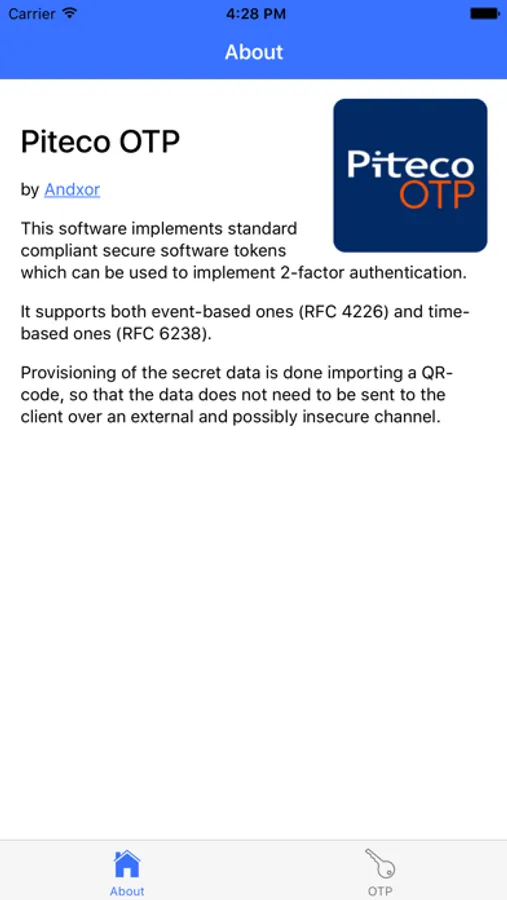Provisioning of the secret data is done importing a QR-code, so that the data does not need to be sent to the client over am external and possibly insecure channel.