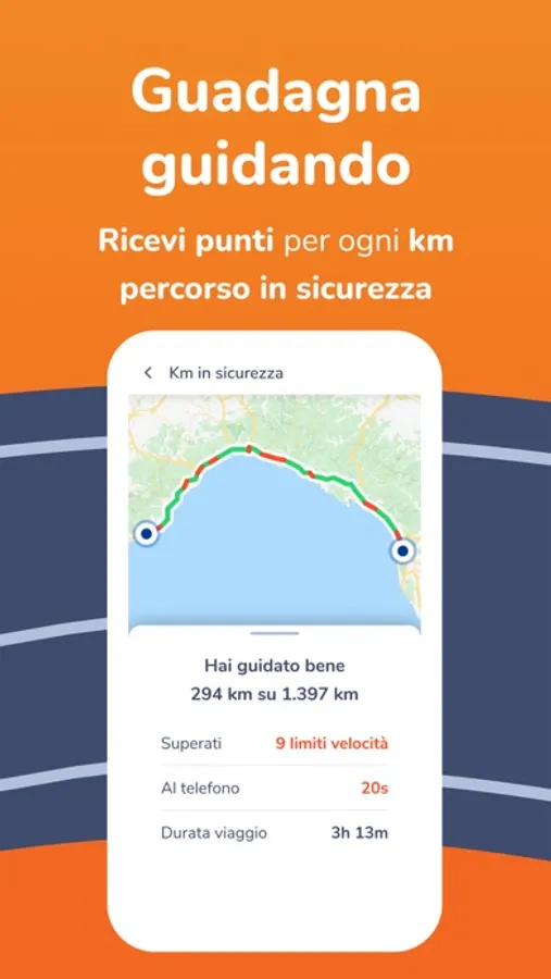 Attivala quando inizi a guidare e lasciala in background: ti segnalerà se superi i limiti di velocità, se hai una guida imprudente, se stai entrando in una Safe Zone.