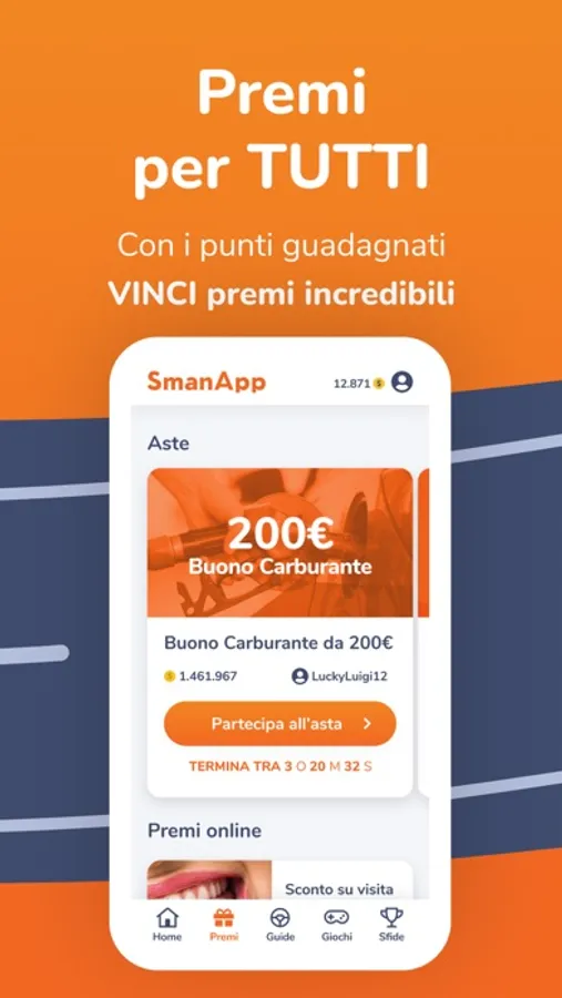 Guadagna punti, sfida gli altri driver, scala la classifica, rispondi ai nostri quiz, partecipa alle aste