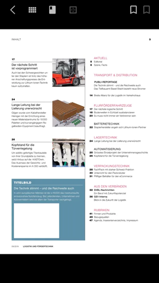 Die führende Schweizer Fachzeitschrift für Innovationen und Anwendungen in der internen und externen Logistik. Die Logistik & Fördertechnik ist offizielles Organ der drei Schweizer Fachverbände GS1, SVBL und SVKTL.