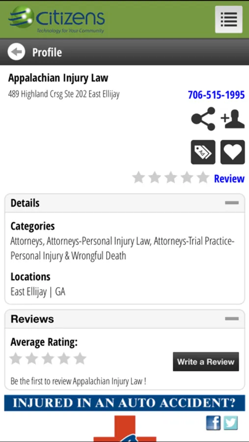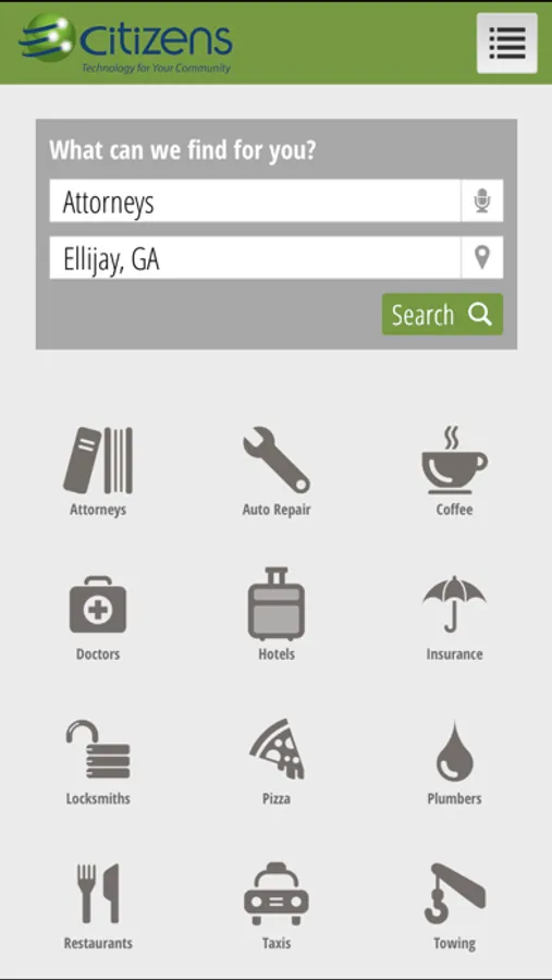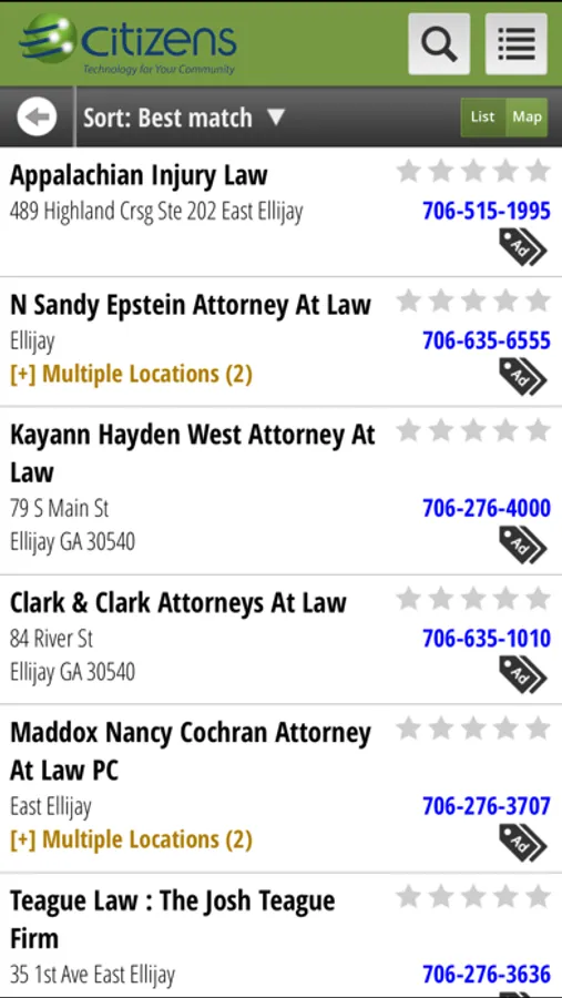The Citizens Telephone Directory app will search the Yellow Pages for businesses in your area or any city nationwide. Access business addresses, phone numbers, websites, email, ads, coupons and other enhanced listing data of our participating yellow page publishers. Sort by distance to find the closest results or sort by relevance of your search term. View results in a list view or toggle through results on a map. Zoom and scroll features in the map view allow users to find results in any area. Easily find local businesses anywhere in the United States with this iPhone Application.