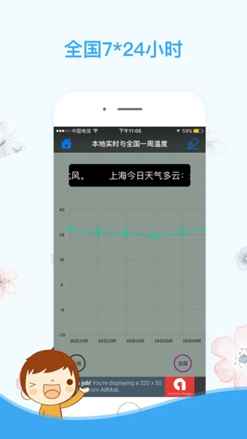 自动定位用户地理位置,然后根据当前地理位置显示当地的室外温度(在中国大陆地区有效)