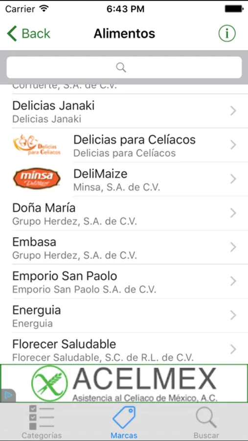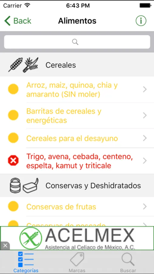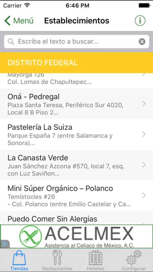 mobiCeliac ACELMEX is an app for your mobile device that provides info in Mexico about: