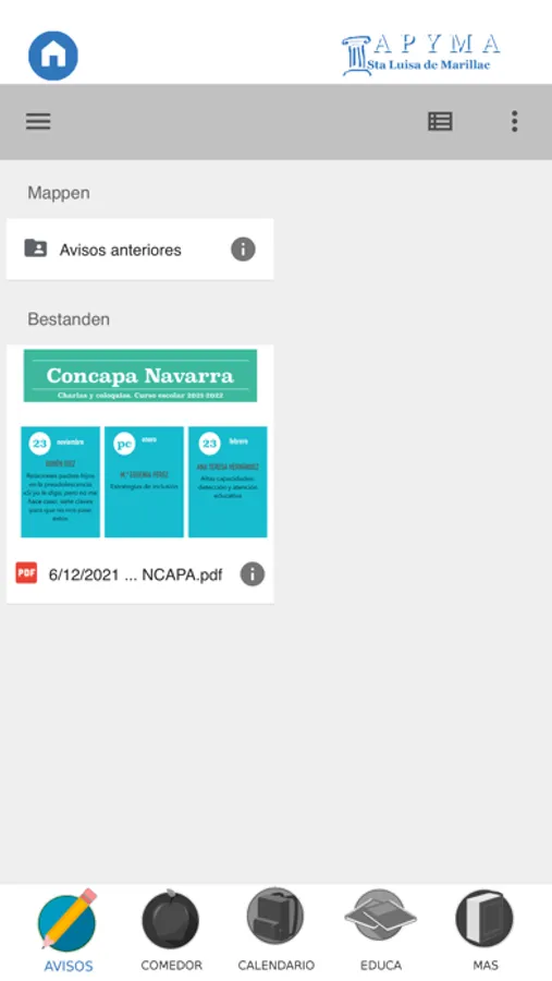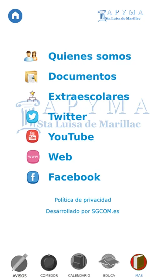 A través de esta aplicación se pretende estar en constante comunicación con todos los padres y madres que forman parte de la APYMA del colegio Santa Luisa de Marillac. Esta aplicación junto con la página web y el perfil en las redes sociales pretende ser un instrumento que ayude a mejorar los canales de comunicación del centro.
