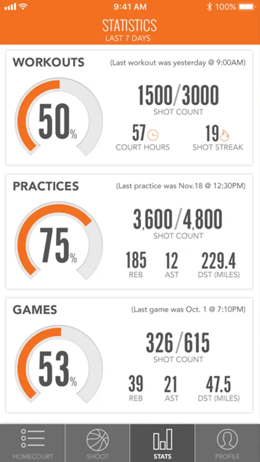 - Get detailed stats: Analyze your skills, whether it be practices, games, or workouts.