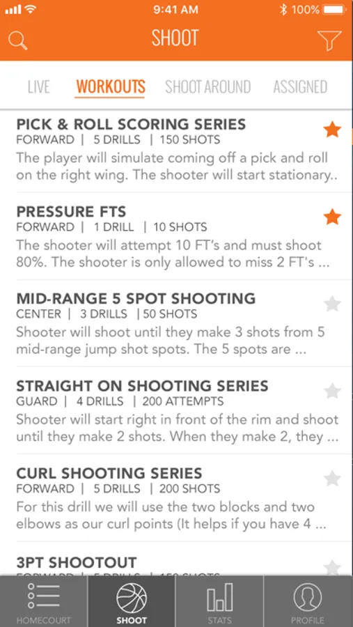 - Access shooting statistics: Review all of your workouts by day, month, year or career. Analyze your shooting percentages, points, court time and personal shot maps.