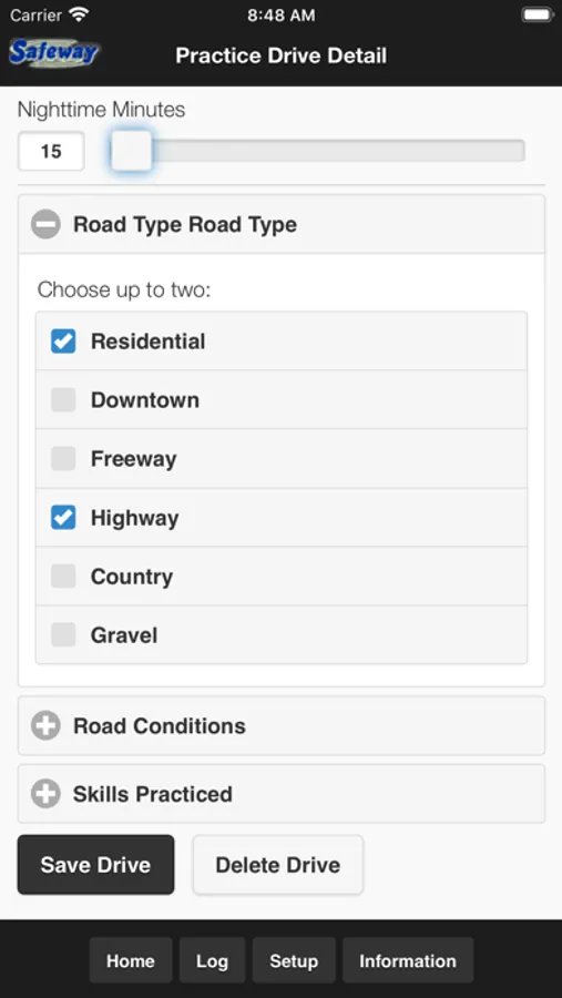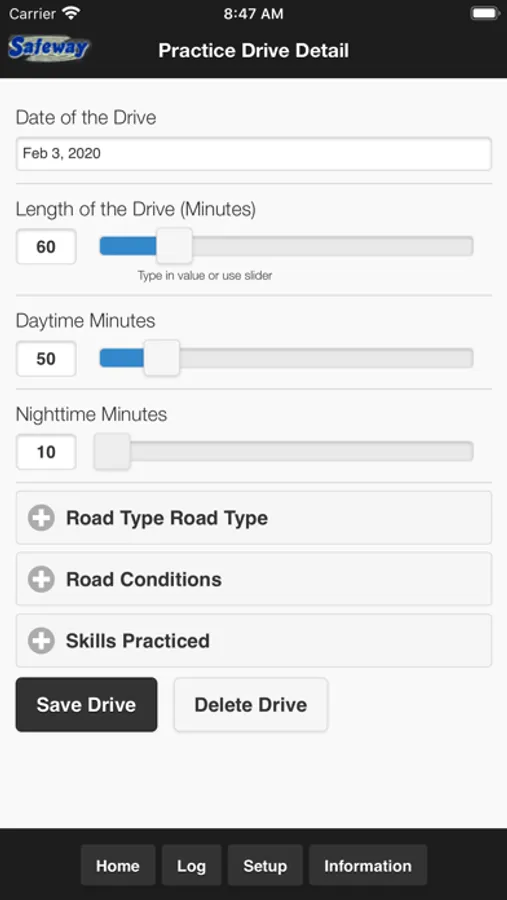 This FREE app lets you keep track of practice driving in order to satisfy Minnesota’s new requirement of 50 hours of practice driving and a written log. You can record driving time, including day and night hours, road type, road conditions and skills practiced. The app keeps track of your total hours and allows additional practice drives to be added to the log manually.
