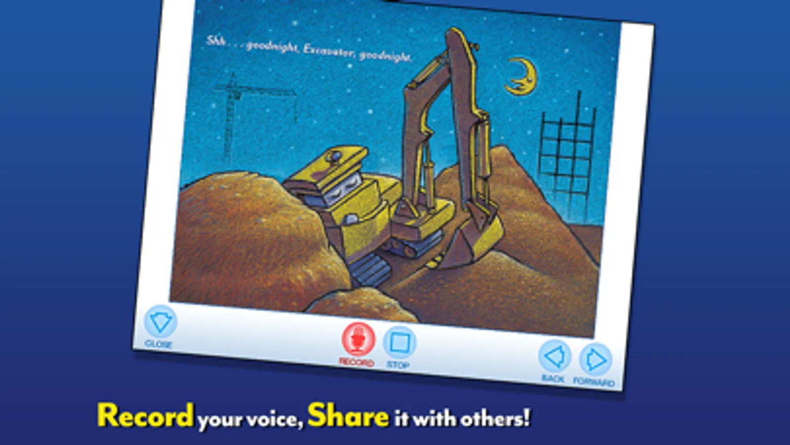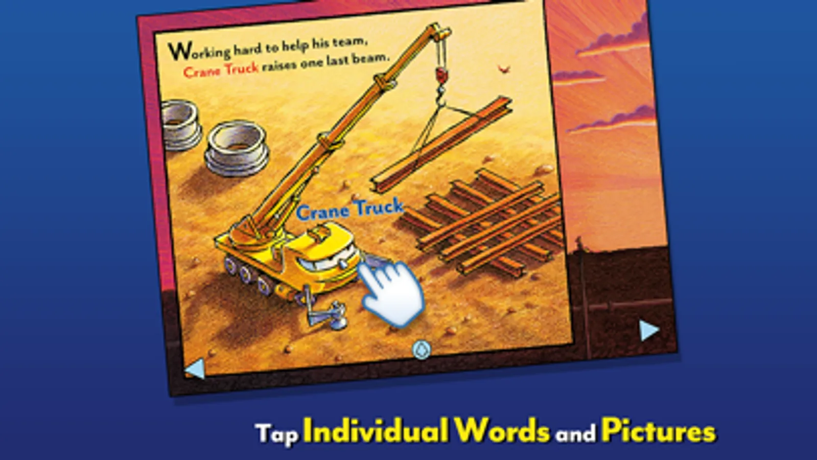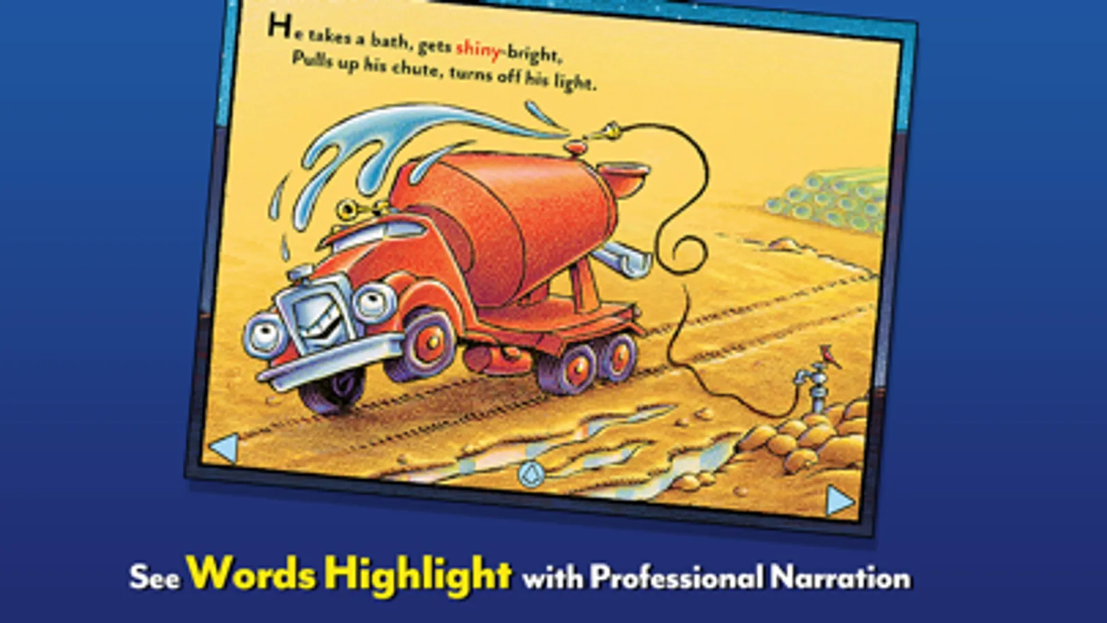 As the sun sets behind the big construction site, all the hardworking trucks get ready to say goodnight. One by one, Crane Truck, Cement Mixer, Dump Truck, Bulldozer, and Excavator finish their work and lie down to rest— so they'll be ready for another day of rough and tough construction play! Explore animated pictures, learn new vocabulary, and personalize the story with your own narration. With irresistible artwork by best-selling illustrator Tom Lichtenheld and sweet, rhyming text, this book will have truck lovers of all ages begging for more.