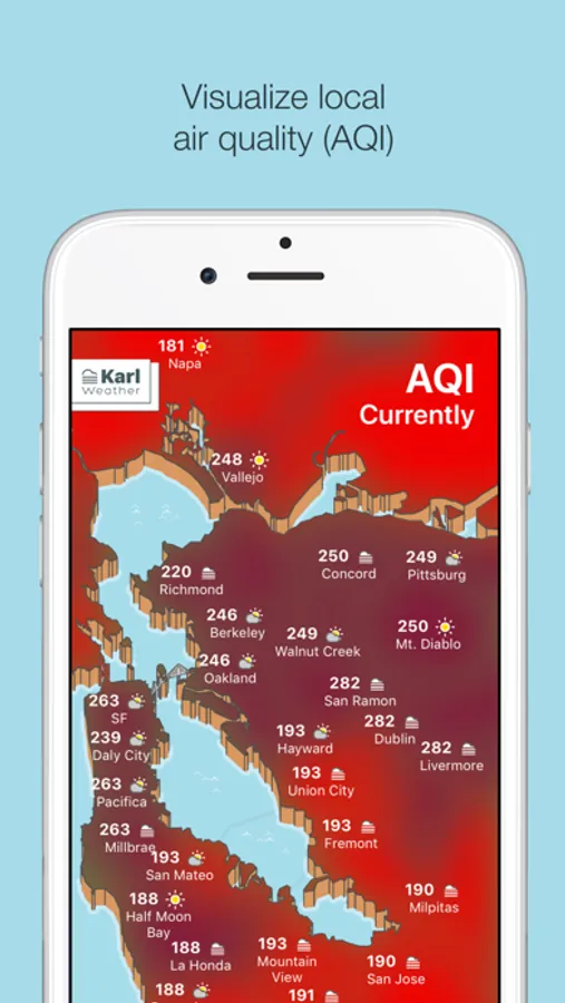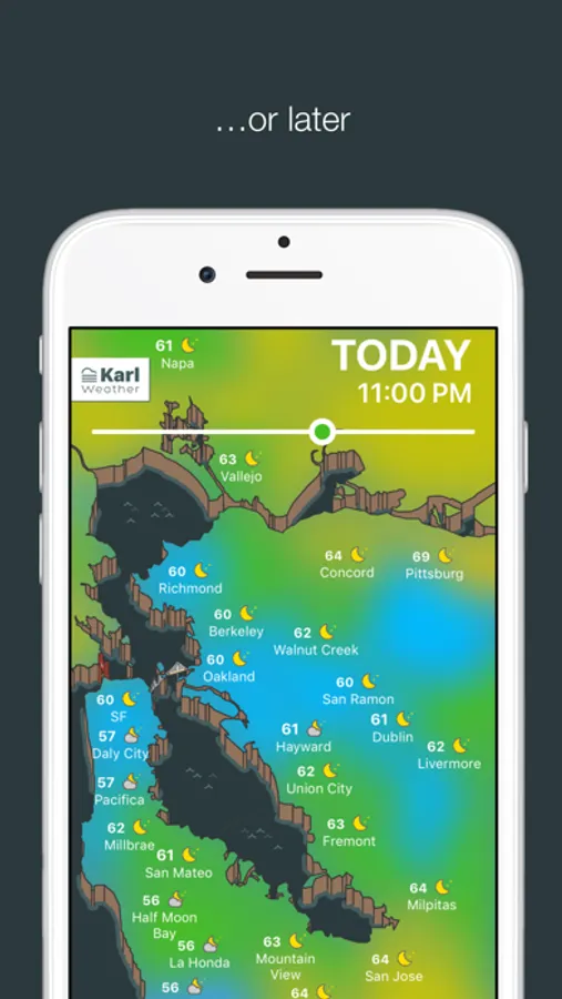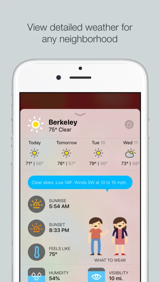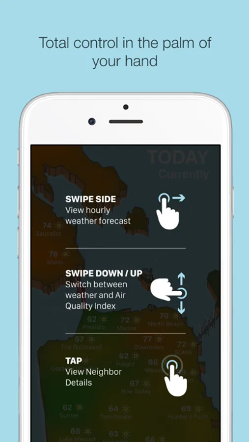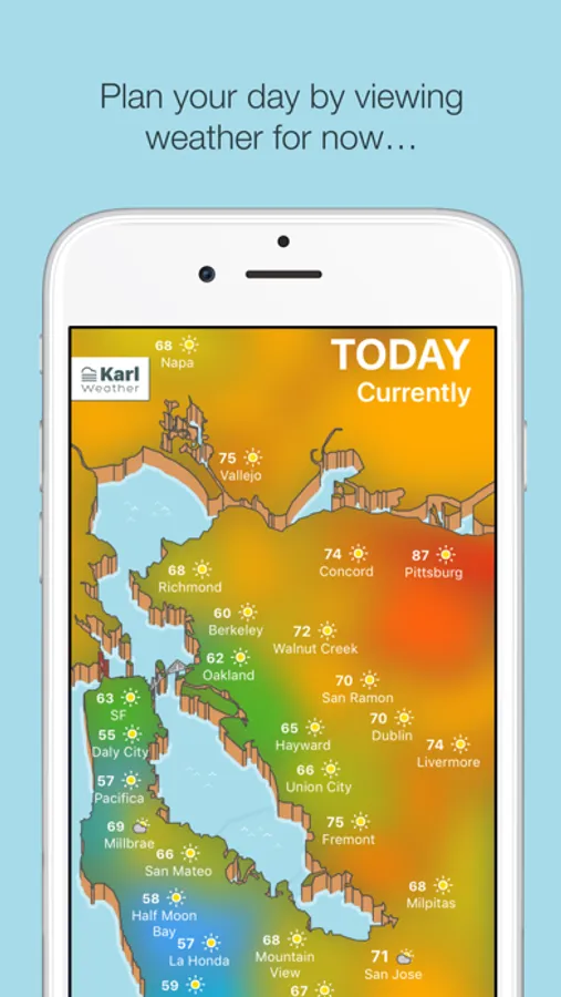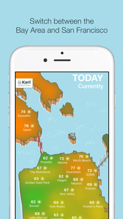 Visualize the weather in San Francisco’s many microclimates or zoom out to plan your day around the Bay Area. View the current temperatures on a beautiful heatmap and swipe across the screen to view forecasted temperatures for the next 24 hours. Want more info? Tap any neighborhood to view detailed weather information.