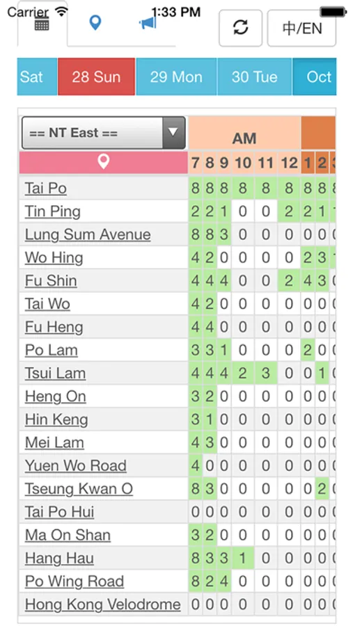 Pick the date, then area and venue. Green time slots means there are free courts, the number inside show the total number of available courts. Simple as that!