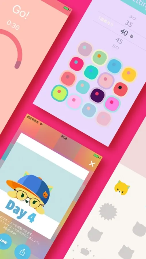‘Gohonya’ the colorful cat will support workout in this app.