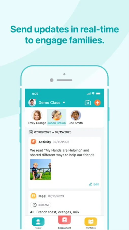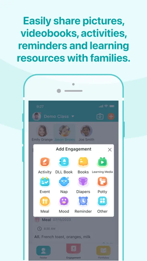 2. Share videobooks, photos, learning media videos, event reminders, and more with parents in real time through the app.