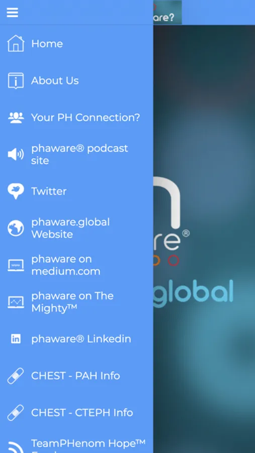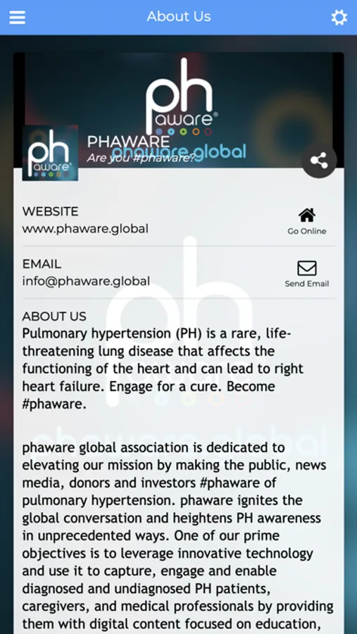 The phaware app lets you Connect, Share and Help Raise Global Pulmonary Hypertension Awareness.