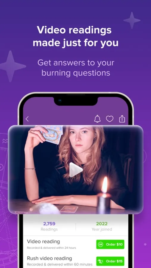You can rest assured that your love reading is the real deal. Purple Ocean is a transparent and accurate psychic reading app with thousands of App Store reviews from satisfied customers, and in-app psychic accuracy ratings averaging 91%. Join hundreds of thousands of users who found reassurance through accurate readings in a safe and easily accessible atmosphere.