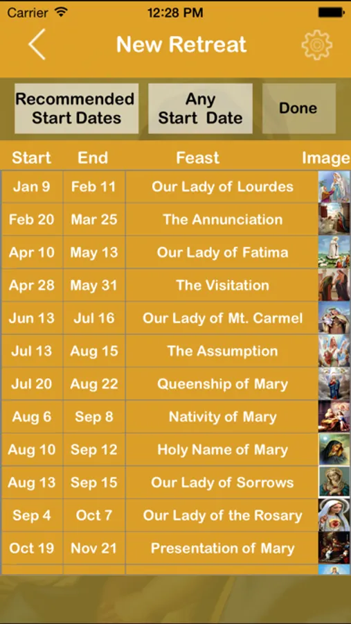 The Totally Yours app allows the user to sign up for a retreat using the 'Recommended Start Dates' (Preferred option), or the user can choose to start the retreat on any given date. Each of the four parts contain a daily reflection and specific prayers. Also included is a journal for the user to jot down anything that touched them that day.The daily learning tab allows the user to specifically identify up to 3 areas that they'd like to be reminded of throughout the day.