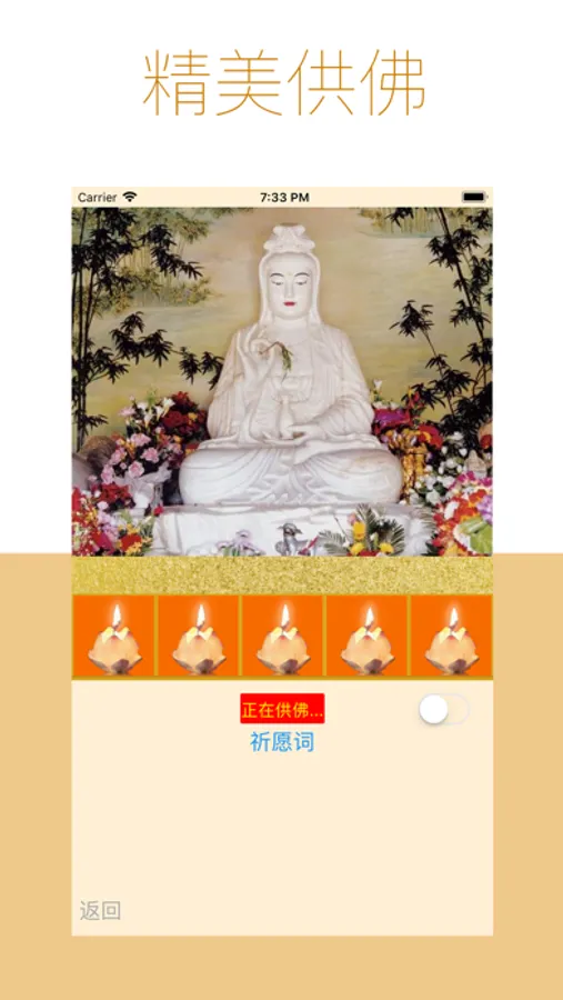 6. For the function of Buddha, you can choose the Buddha image. There is a white jade Avalokitesvara image in the purple bamboo forest of Mount Tuo, Mount Putuo. You can go to Putuo without leaving home. You can use Buddha number to exchange incense, lamp, water, flower, fruit, treasure and gold offerings for Buddha, and play Buddha mantra while offering Buddha. Please put your cell phone in place when offering Buddha. Sincerity is the spirit. When the time is up (10 minutes), the offerings will be automatically collected!