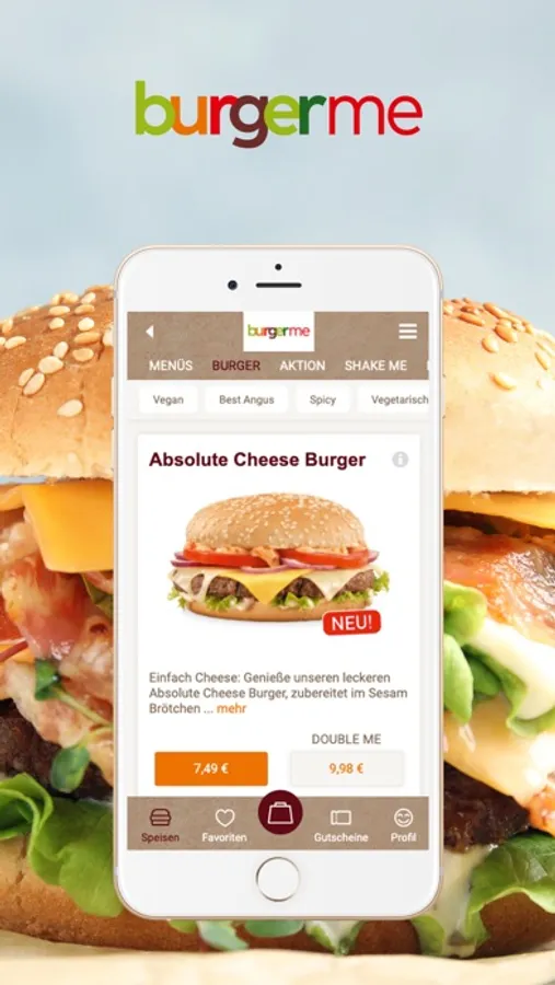 JETZT downloaden, Essen bestellen, unsere leckeren Burger genießen und von burgerme Service und Qualität profitieren. Guten Appetit!