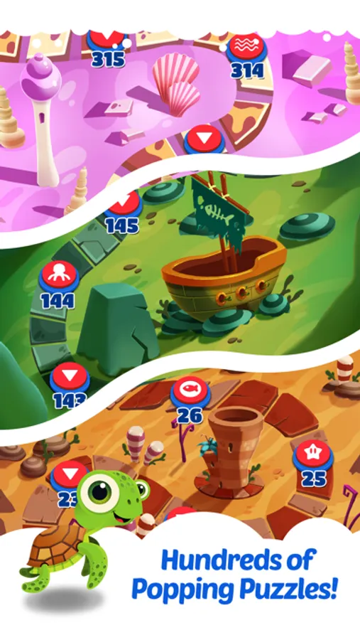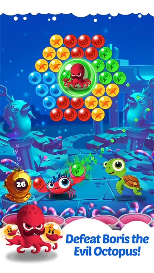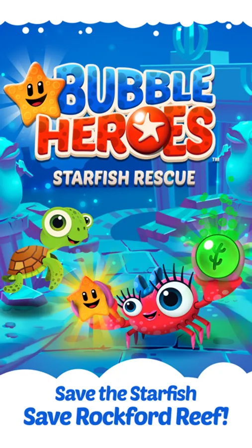 Play through over 370 levels, many underwater worlds, and a variety of fun and challenging game modes including: 'Save the Starfish', 'Collect the Top' and 'Avoid the Current'. Travel through the delightful world of Rockford Reef and help the Bubble Heroes save the Starfish!