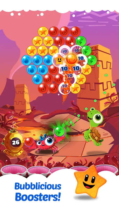 • Follow the adventures of the Bubble Heroes across masses of bubble popping game modes