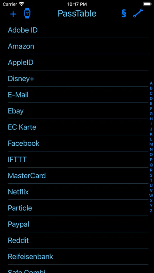A list of passwords that is limited to the essential. Simple and effective without frills.