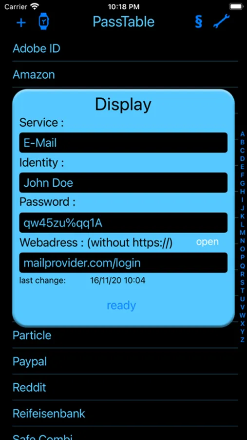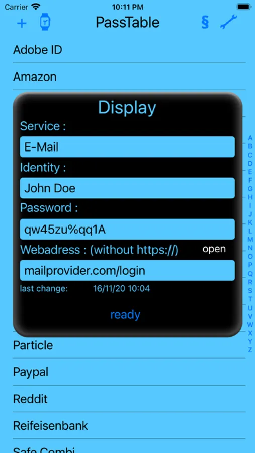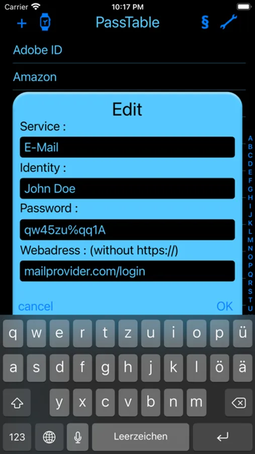 PassTable saves your passwords, pins and other information encrypted on your IOS devices. The password database can be synchronized on your IOS devices via ICloud. If you don't trust ICloud, you can simply turn off synchronization.