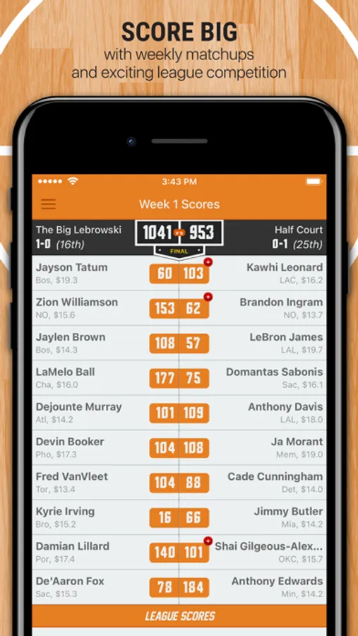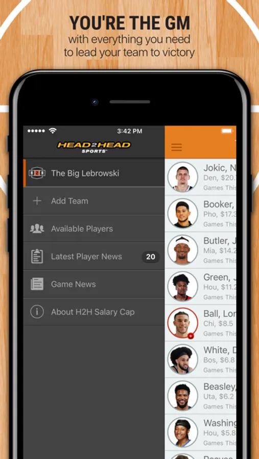 You are the owner, general manager, and coach of your very own 2023-24 pro basketball franchise. YOU decide the starters each week. Using an imaginary $100 million bank account, pick your team of 10 pro basketball players (any position), who you think will rack up the most points each week using the unique Head2Head scoring system. All of the players listed have been assigned a salary based on past performance and expected performance this season. Your players will earn Head2Head Fantasy Points based on their actual on-court performance.