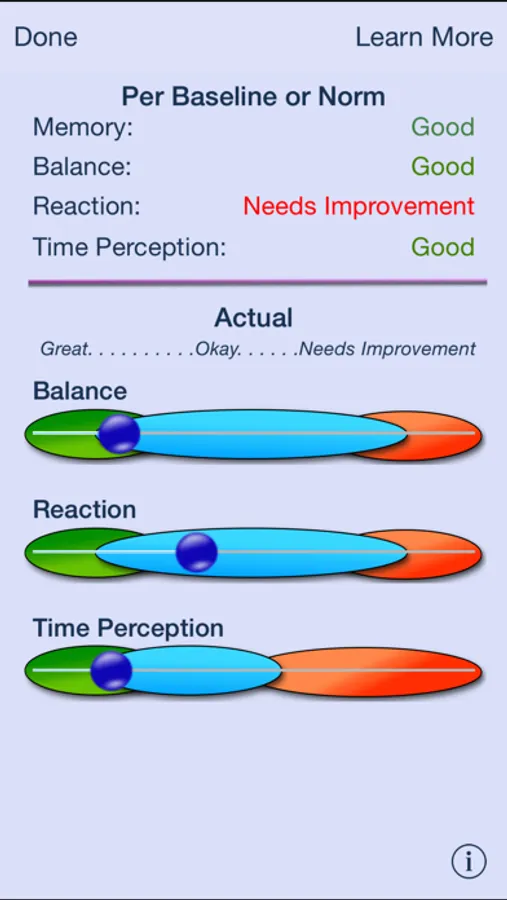 Identify and monitor basic changes in memory, balance, reaction time and time perception in order to: