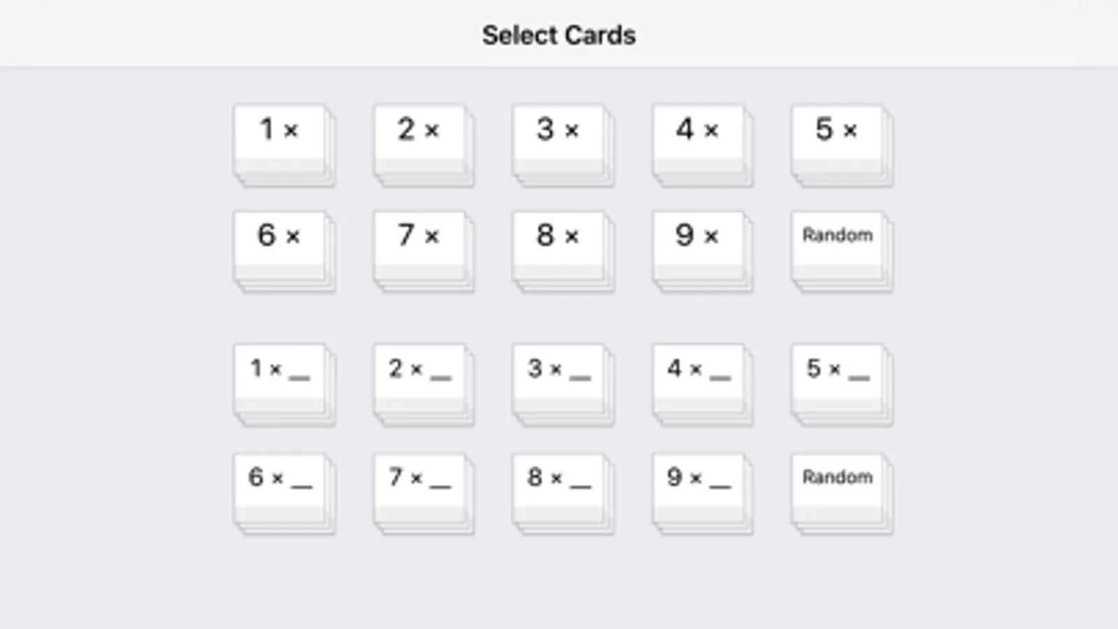 - Contains 20 sets of 9 cards (1x1 ~ 9x9, 1x__=X ~ 9x__=X)