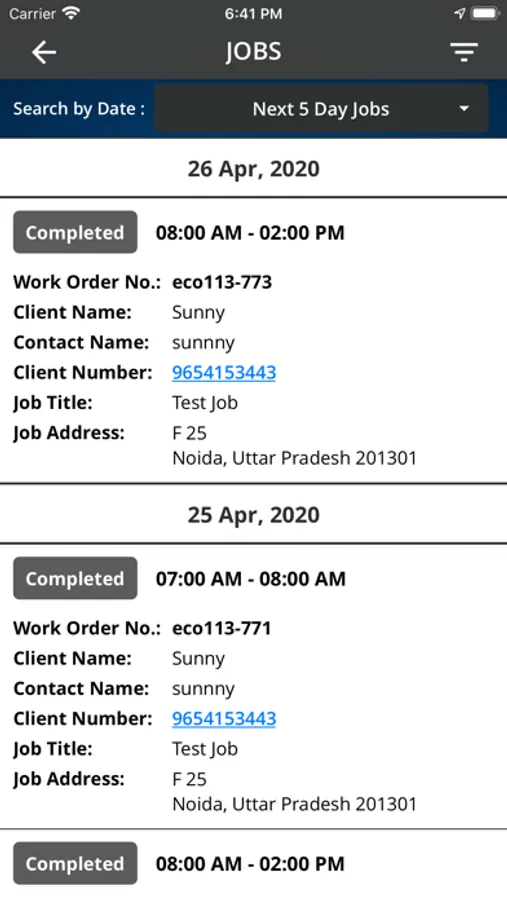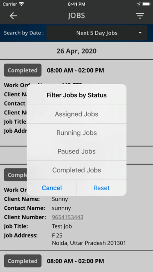 - Job Completion reports