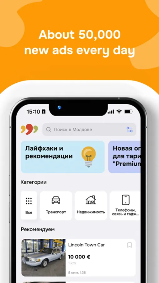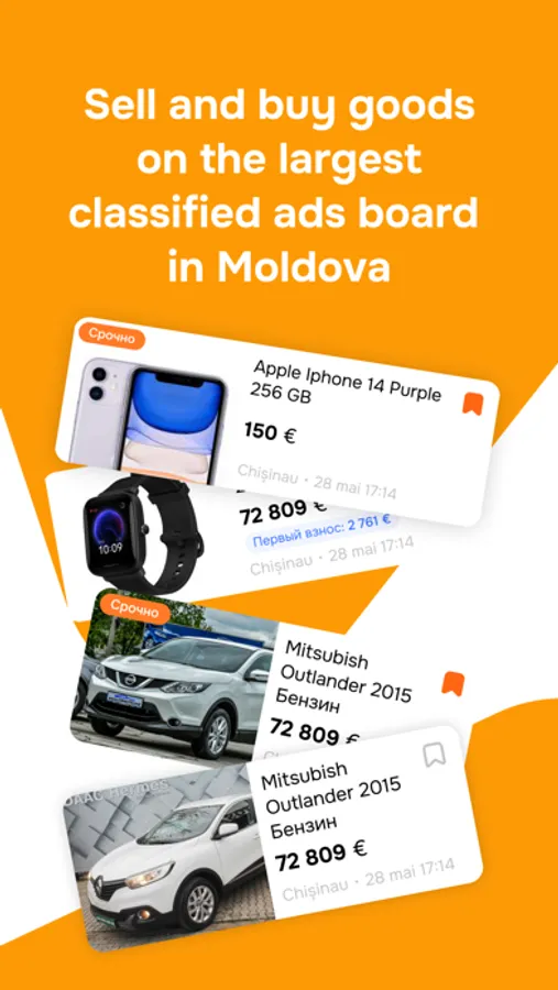 With the official 999.md app you get access to a huge database of the biggest listings board in Moldova.
