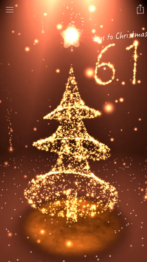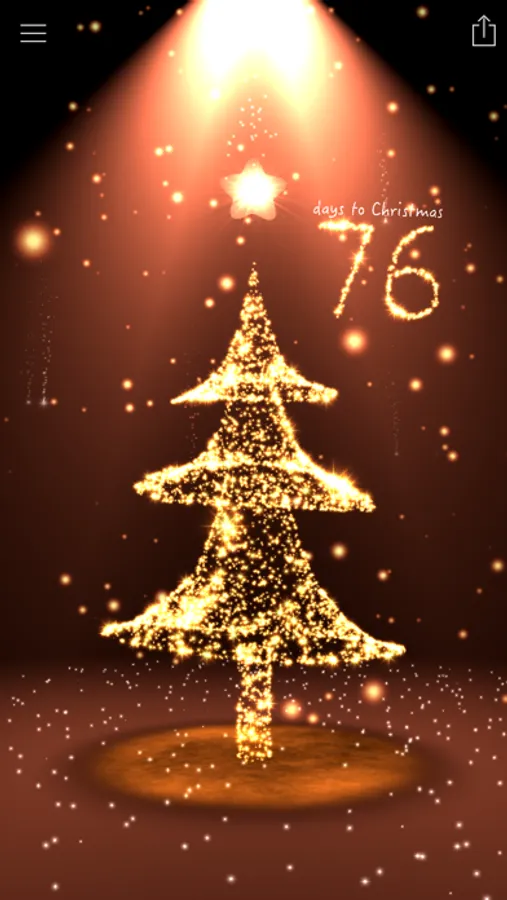 Enjoy an interactive 3D Christmas countdown scene with a snowfall of lights and a Christmas tree made of colorful lights. Tap the christmas countdown to activate a firework, tap on the tree top (Christmas star) and make a light beam sweep. Move your device to see an amazing 3D hologram effect!