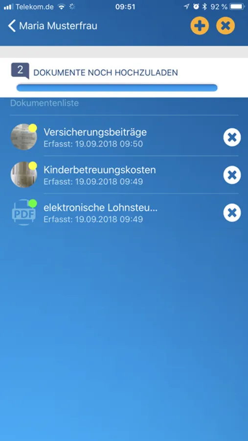 Die Unterlagen für Ihre Einkommensteuererklärung mit einem Knopfdruck an die Beratungsstelle senden.