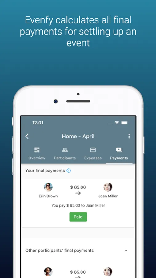 - Close the event and know who pays who in an optimized way