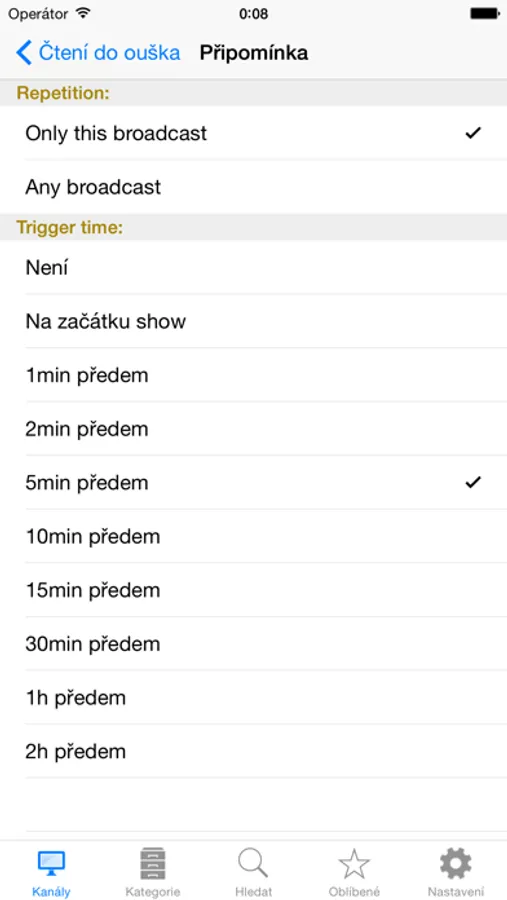 • Ability to receive an alert before the show is on air: up to 2 hours before the show