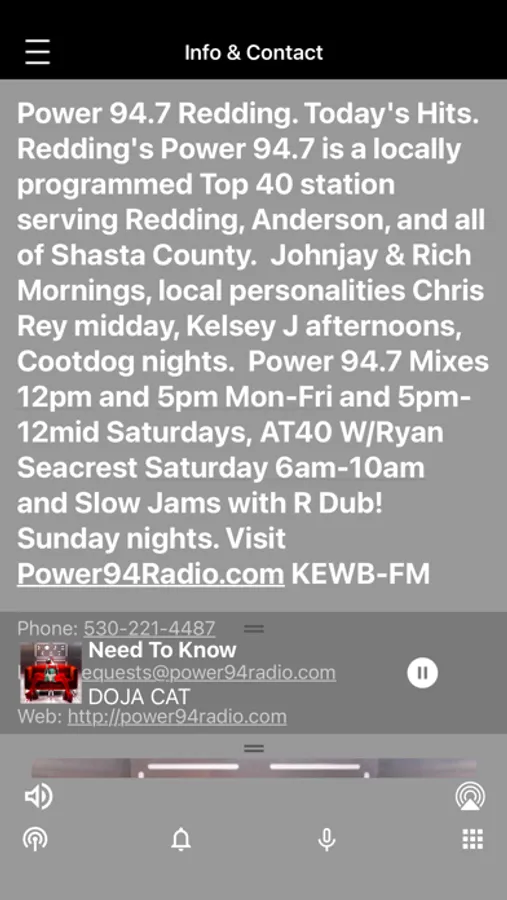 Power 94.7 Redding. Today's Hits. Redding's Power 94.7 is a locally programmed Top 40 station serving Redding, Anderson, and all of Shasta County. Johnjay & Rich Mornings, local personalities Chris Rey midday, Kelsey J afternoons, Cootdog nights. Power 94.7 Mixes 12pm and 5pm Mon-Fri and 5pm-12mid Saturdays. AT40 with Ryan Seacrest Sunday mornings. Slow Jams with R Dub! Sunday nights. Visit Power94Radio.com KEWB-FM
