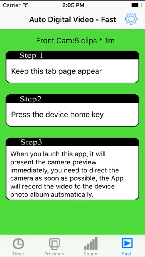 1 Fast: Just tap this App icon , so this App will be launched, after that, this App will record the video clips automatically.