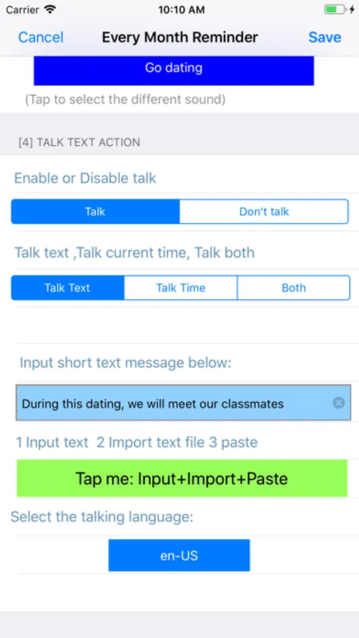 2 When the App is launched, the reminder could talk the text in more than 20 international languages at the indicted time.