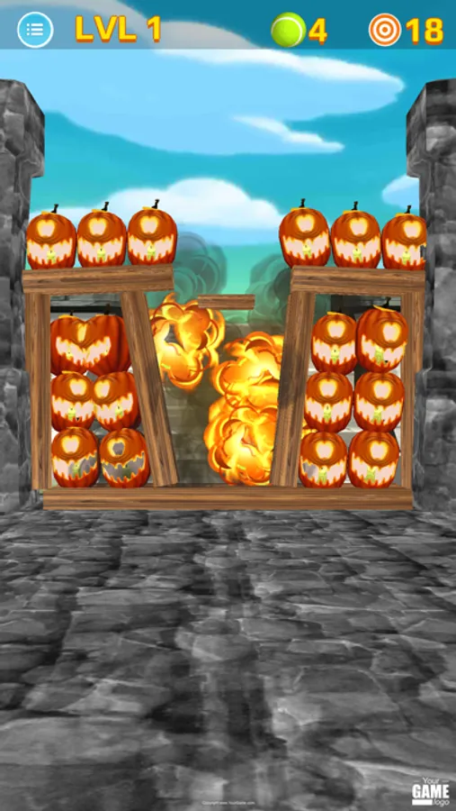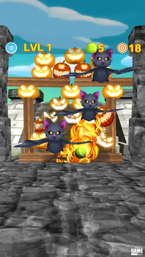 A fun "smashing-things" game with Halloween theme. Your task in the game is to knockdown all the pumpkins in various formations with a limited number of tennis balls. Just swipe to aim to the pumpkins and watch them hit the pumpkins in spectacular destruction.