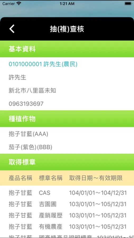 1. 掃描追溯條碼:掃描 QR-Code 查詢生產者相關資訊。