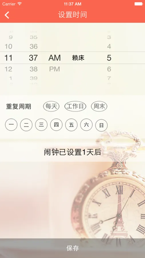 10.支持多种闹钟循环模式,可以对周一至周日随机组合循坏闹钟