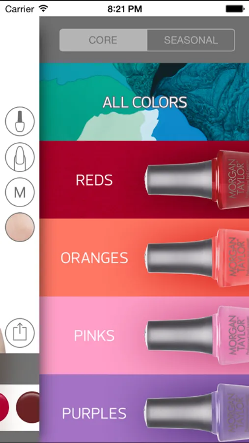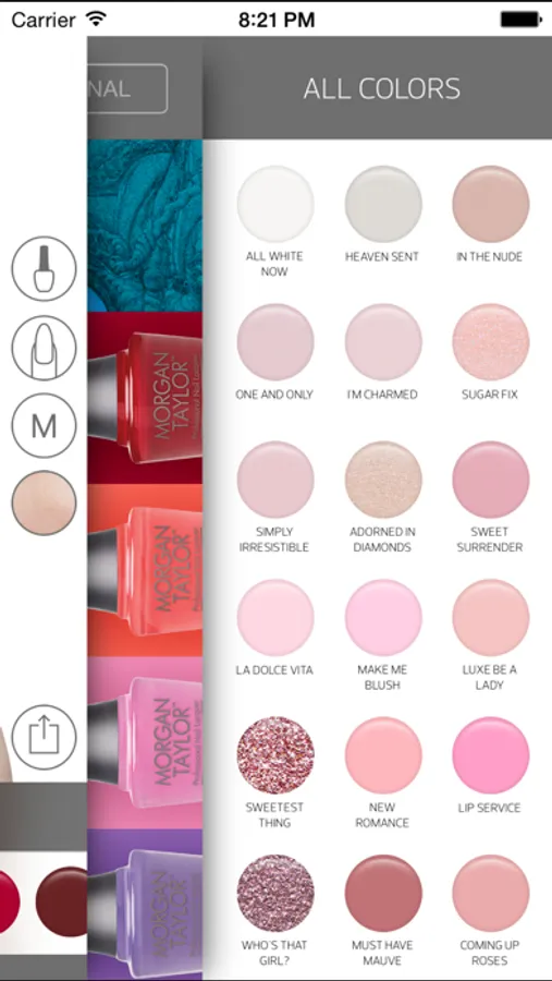 • Virtual Salon: Customize skin tone, nail shape and length, and try-on over 100 Morgan Taylor shades.